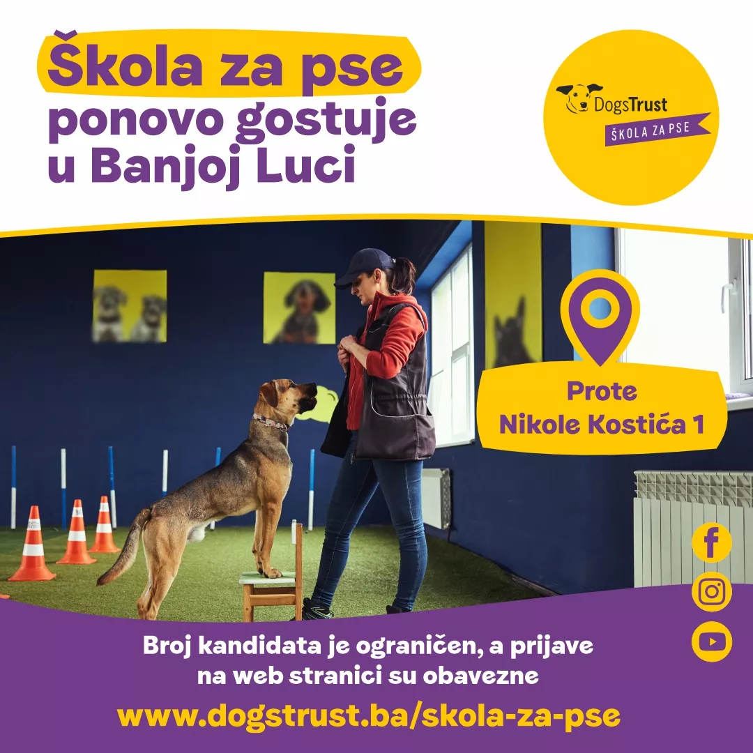 NAPOMENA: U periodima koji nisu najavljeni za gostovanje u drugim regijama, obuka u Školi za pse se odvija na njenoj stalnoj lokaciji, Semizovac bb.